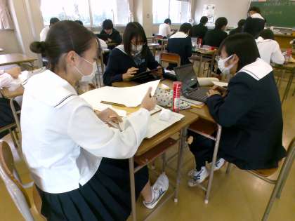 3年2組はロゴマークやパッケージデザインを行っています!次回は制作最終回!