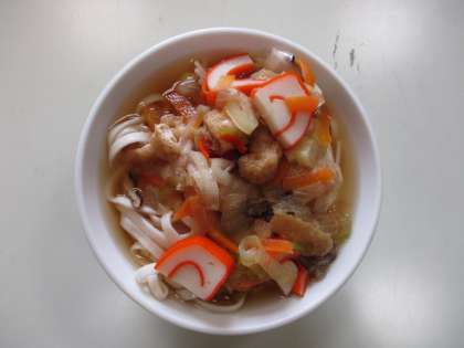 かしわうどんも、ひじきごはんも、ちょうどよい塩加減で
