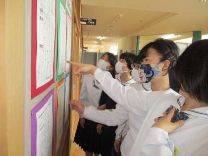 2学年では、期末考査に向けて「ここだけは覚えておこう!」の掲示をしました。学年生徒会のメンバーが、各教科の重点箇所をまとめてくれました。