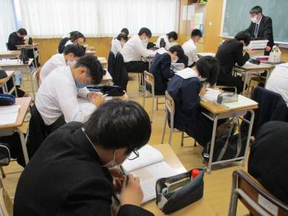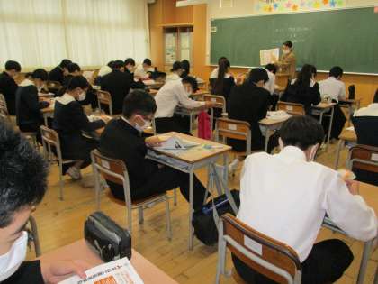2学年では、「進路のしおり」を配付し、進路選択の心構えや入学者選抜の方法等について学びました。