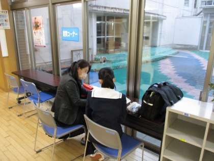 質問教室の様子です。個別に先生に質問している生徒もいました。テスト勉強は大変ですが、頑張ってください!