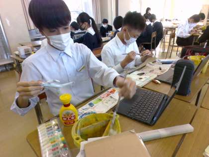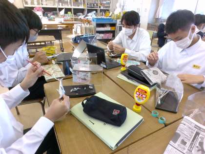 2年2組は新聞紙彫刻の最終回です!完成目指して頑張っています!
