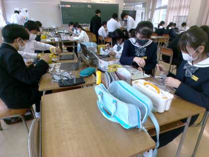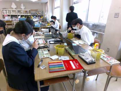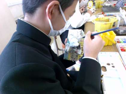 2年2組は新聞紙彫刻の制作はついに最終回です!完成に向けて頑張っています!