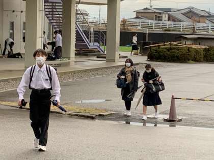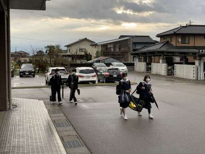 今朝、千里あたりの山が白くなっていました。みぞれも降っていました。自転車通学生は天気予報を注視しましょう。