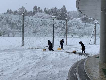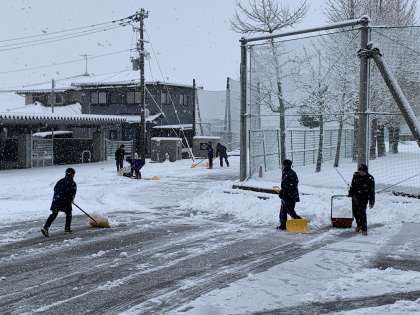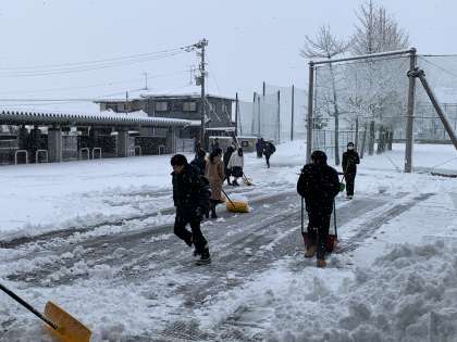 今日の除雪当番は2年3組でした。たくさん降り積もった雪、大変でしたね。