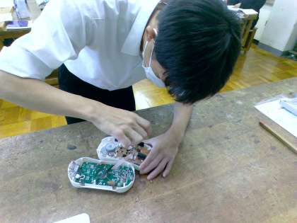 ダイナモラジオの製作に取り組んでいます。クラスによっては、多くの生徒が完成しています。
