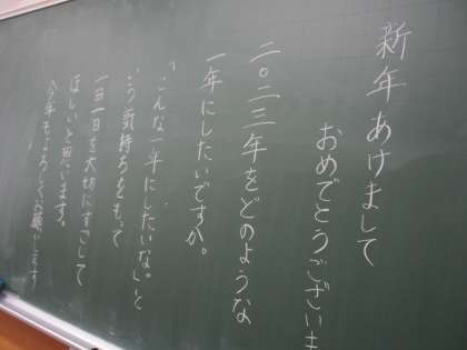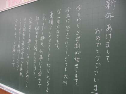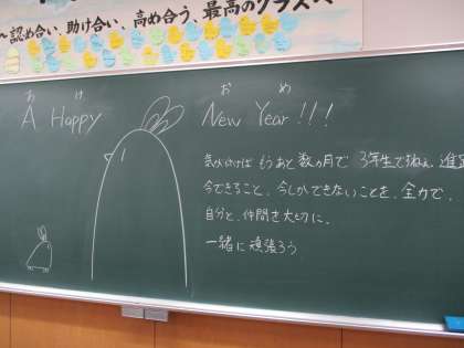 3学期のスタートに際し、担任からの思いが黒板に書かれていました。