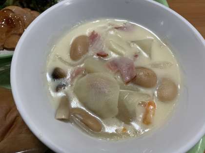 豆いっぱい入ってます。サラサラのクリーム煮で良かった。