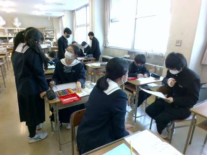1年2組は、抽象絵画に挑戦しています!前時のアイディアスケッチを基に作品制作が始まりました!