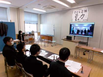 第2回スマイル交流がオンラインで行なわれました。城山中学校は、ハンドベル演奏で「ビリーブ」を演奏し、3年生が卒業メッセージを発表しました。