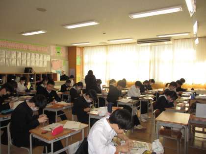 1組社会、2組美術、3組家庭の様子です。来週の火曜日から学年末考査です、頑張ってください!
