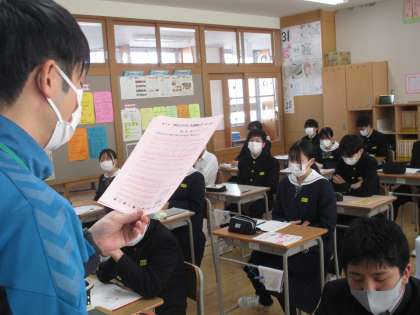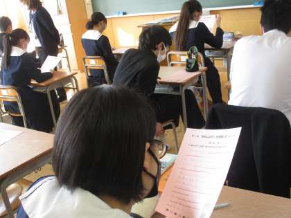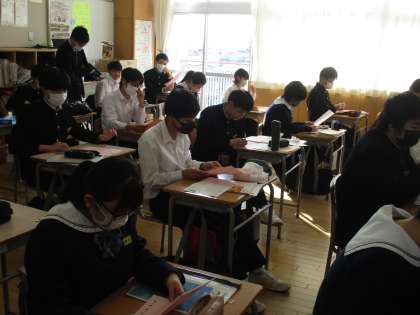 平和学習として、先日視聴した動画の感想をクラスで共有しました。担任が読み上げたり、グループで交換したりして、友達の考えや思いを感じていました。