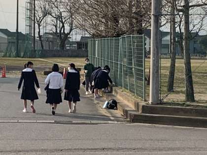 今日の除雪・清掃ボランティアは2年3組でした。グラウンド横の除草をしました。