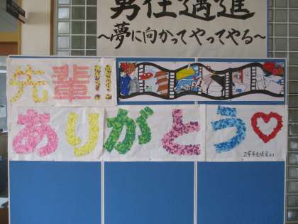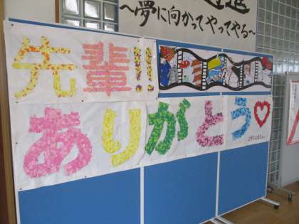 2学年と美術部より、3年生に感謝の気持ちを込めた作品を掲示しました。