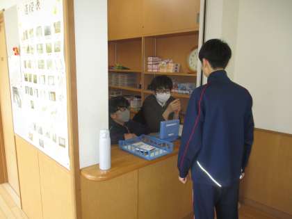 今日のお昼の当番は、2年男子でした。明日で、今年度の購買室の運営は終了します。今年度もたくさんのご利用ありがとうございました。