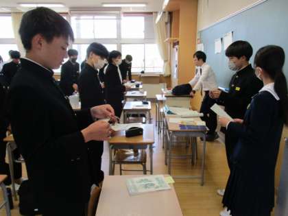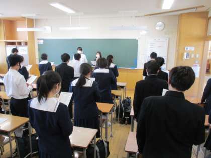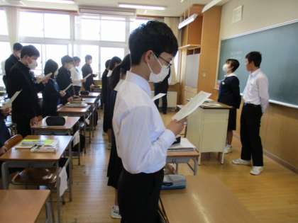 明日の生徒会入会式に向けて、生徒会応援団が2、3年生の教室に出向き、応援歌の練習をしました。