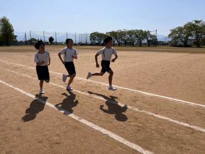 3年生のスポーツテストの様子です。 持久走を行いました。