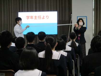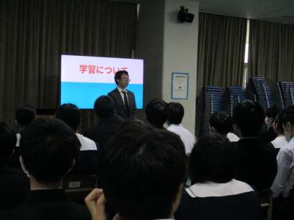 3年生がスタートして2週間あまり。生活面、学習面についての話を真剣な眼差しで聴いていました。