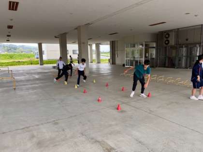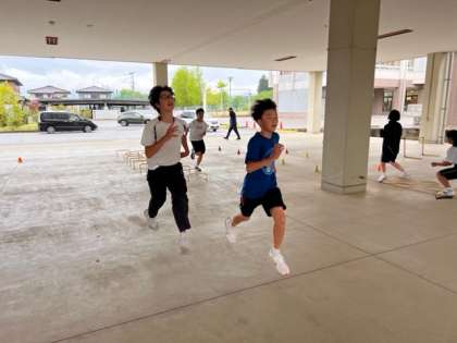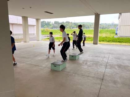 あいにくの天候のため、ピロティでトレーニングを行いました。