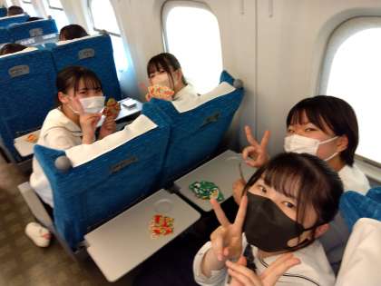 新幹線に乗って、広島に向かっています。