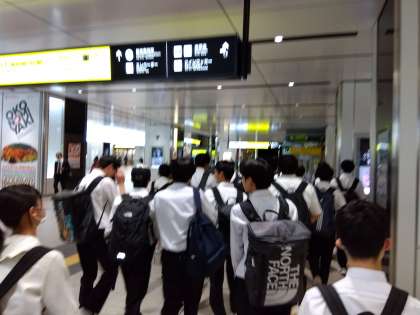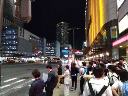 夕食を終え、これからバスに乗って宿舎に向かいます。