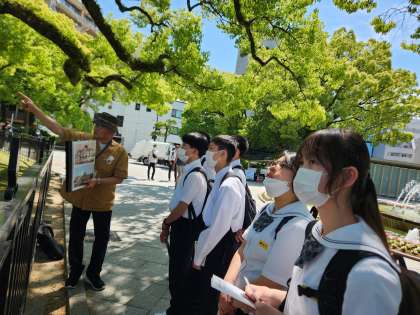 真剣に聴いています。広島の被爆証言の会の皆様に感謝します。