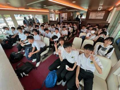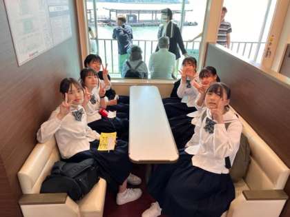 フェリー船内の様子です。気持ちのよい潮風を浴びています。