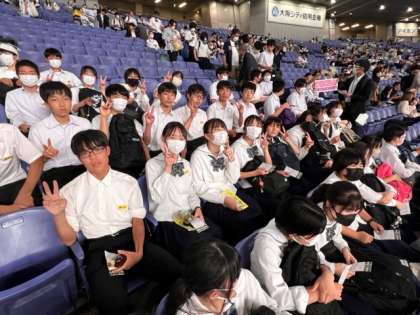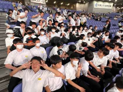 初めてプロ野球を見る生徒たちも楽しそうに盛り上がっています!