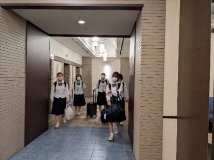 おはようございます。3日目の朝。今日も時間に余裕をもって、続々集合。お土産で荷物が重そうです。