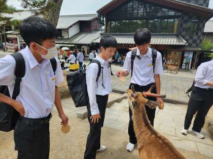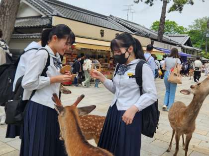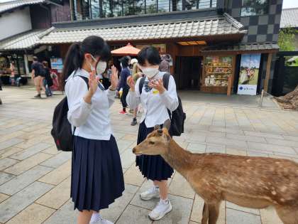 鹿と戯れています。