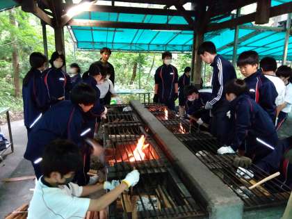 野外炊飯の様子です。火がつき始めました!