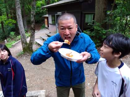 校長先生が検食しました。少し味が濃いめなので修正です。