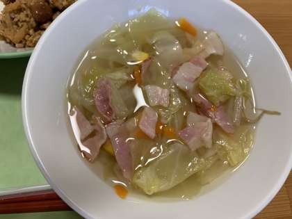キャベツスープは、野菜の旨みがたっぷり出ていて、とても美味しかったです。