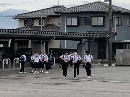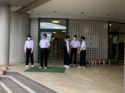 今日は2年2組の班長さんが挨拶運動をしてくれました。