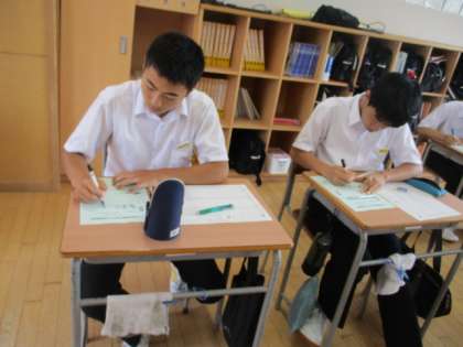 1学期の期末考査範囲表が配布されました。各自、学習計画表を作成しました。また、1学期の期末考査に向けての決意表明を行いました。