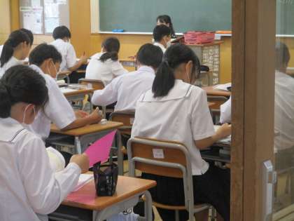 期末考査に向けて学習に取り組んでいます。文化委員は、「予想問題プリント」を作成しています。