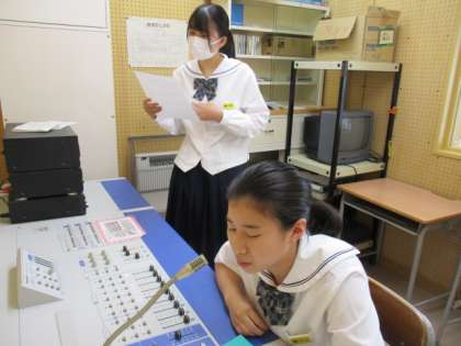 給食の時間に、実践委員会からのお知らせが放送されます。本日は、健康委員会からのメディアコントロールについて、文化委員会からの朝の学習会について等の内容でした。