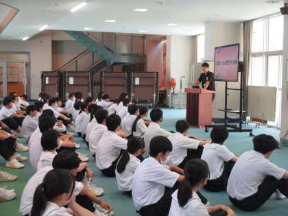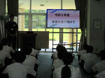 3年生は、体育大会のリーダー決めに向けて学年集会を行いました。