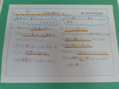 数学、英語が苦手な生徒が多いようです。先生からのアドバイスを参考に学習に励みましょう!