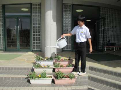 ボランティア委員が、毎日、花に水やりをしてくれています。