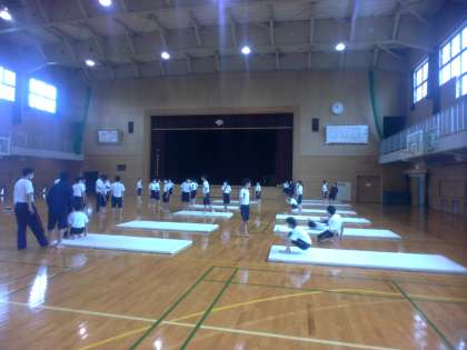 1組保健体育、2組数学の様子です。保健体育はマット運動、数学は一次関数の学習をしていました。