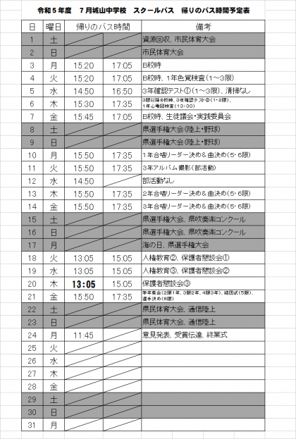 7月20日(木)の1便が12:50から13:05へ変更となります。