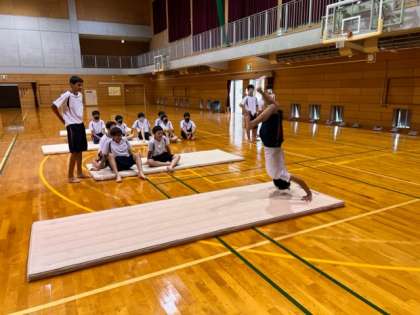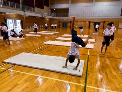 マット運動の回転系の技に挑戦しました。