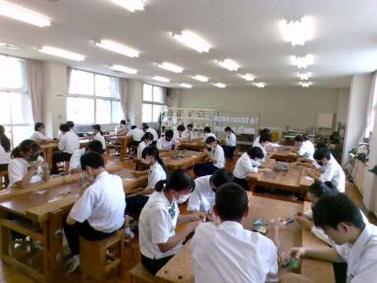 技術の様子です。はんだ付けの練習をしています。適度な緊張感をもって作業しています。