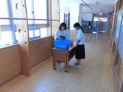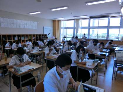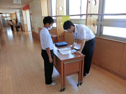 生徒は、一人一人呼ばれて、通知表を手渡されています。