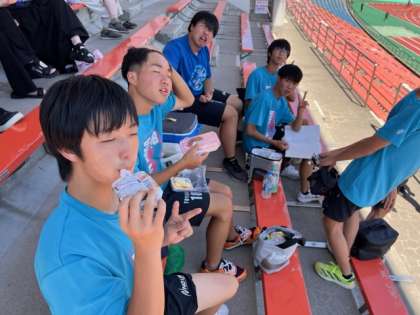 富山県選手団は先程会場に到着し、昼食をとっています。