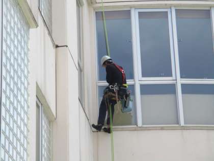 2学期スタートに向けて、業者の方が窓清掃をしてくださいました。窓が美しくなると、気持ちもすっきりします。暑い中、ありがとうございました。