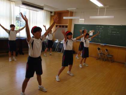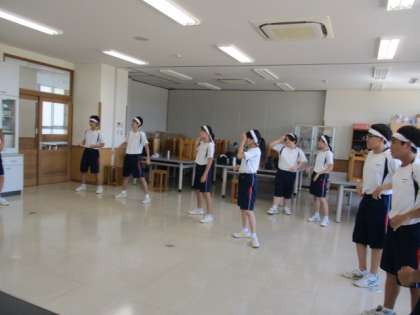 体育館で通し練習をしたり、教室で細かな動きの確認をしたりしました。明日は、グラウンドで行う予定です。
