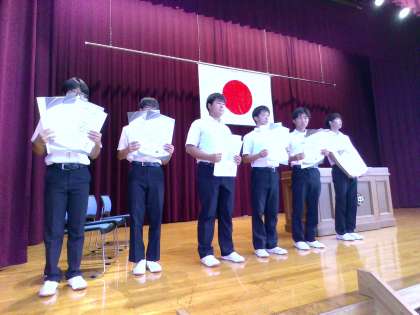 陸上競技部の受賞報告の様子です。みなさん、素晴らしい成績を残しました。おめでとうございます!