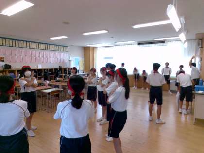 今日は、暑さ対策のため、各教室で団活動を行いました。